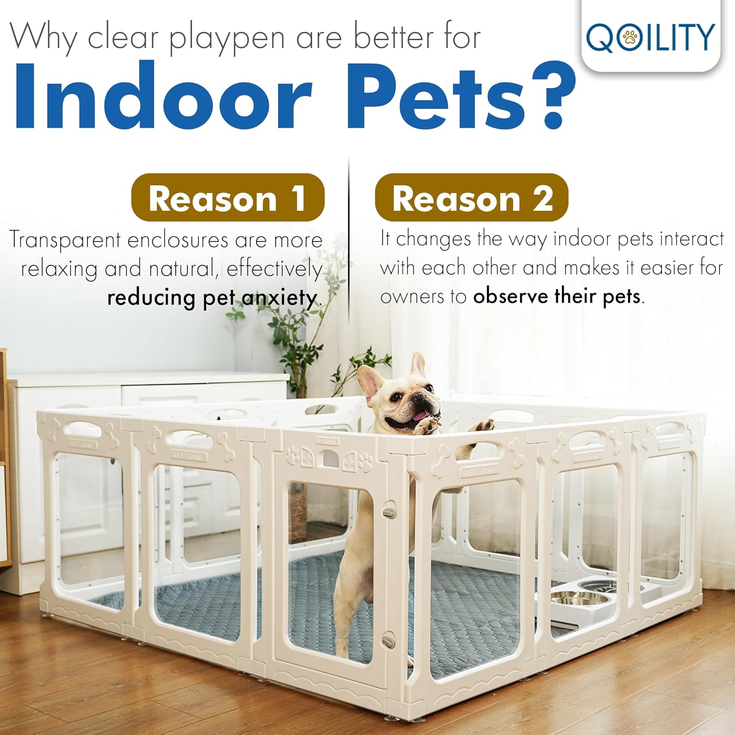 Clear Dog Play Pen Indoor, Effectively Relieves Indoor Pet Anxiety, 56" x 37" x 23.6"H, Suitable for Dogs and Puppies, White