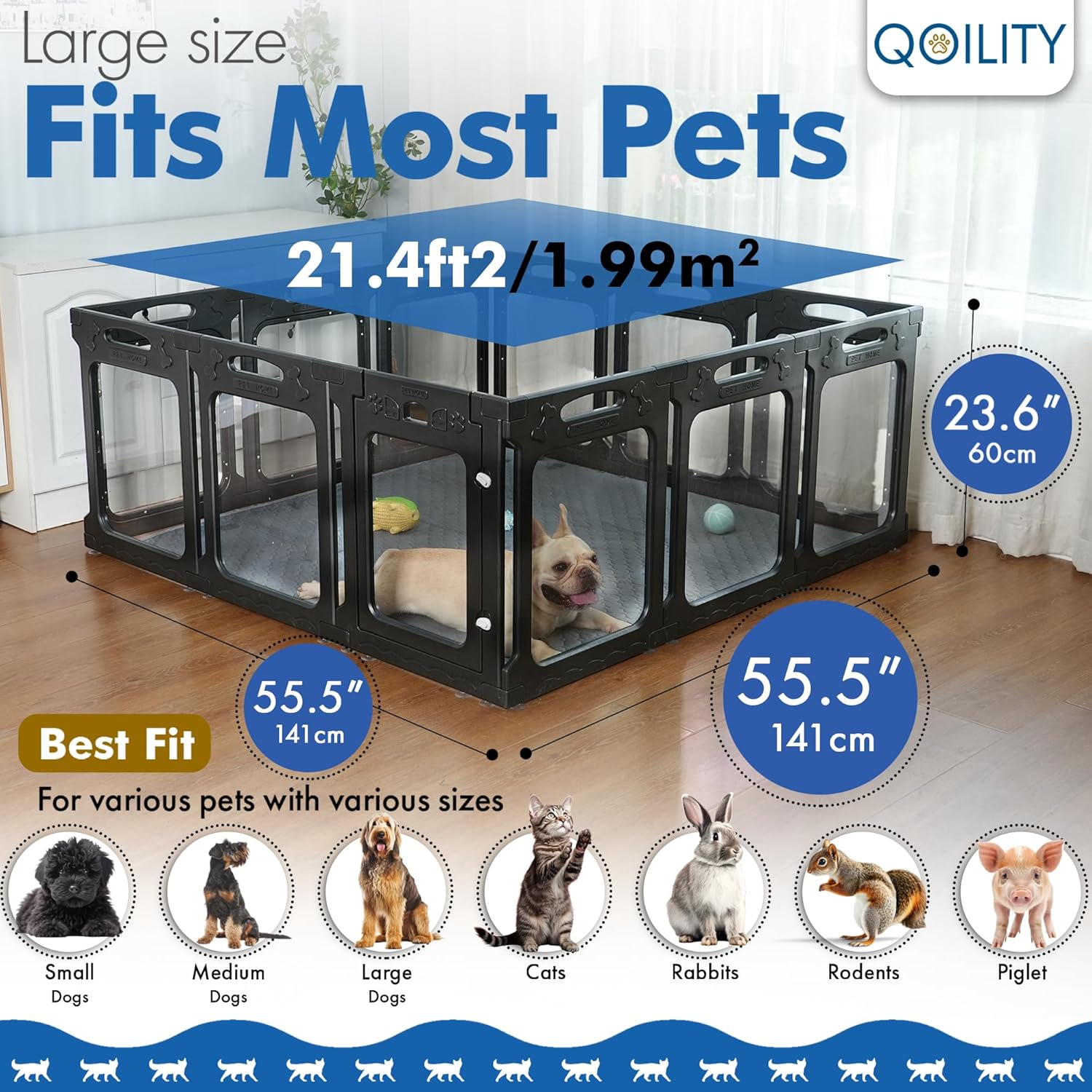 Clear Acrylic Dog Playpen Indoor, Effectively Relieves Indoor Pet Anxiety, 56" x 56" x 23.6"H, Suitable for Puppy and Dog, Black