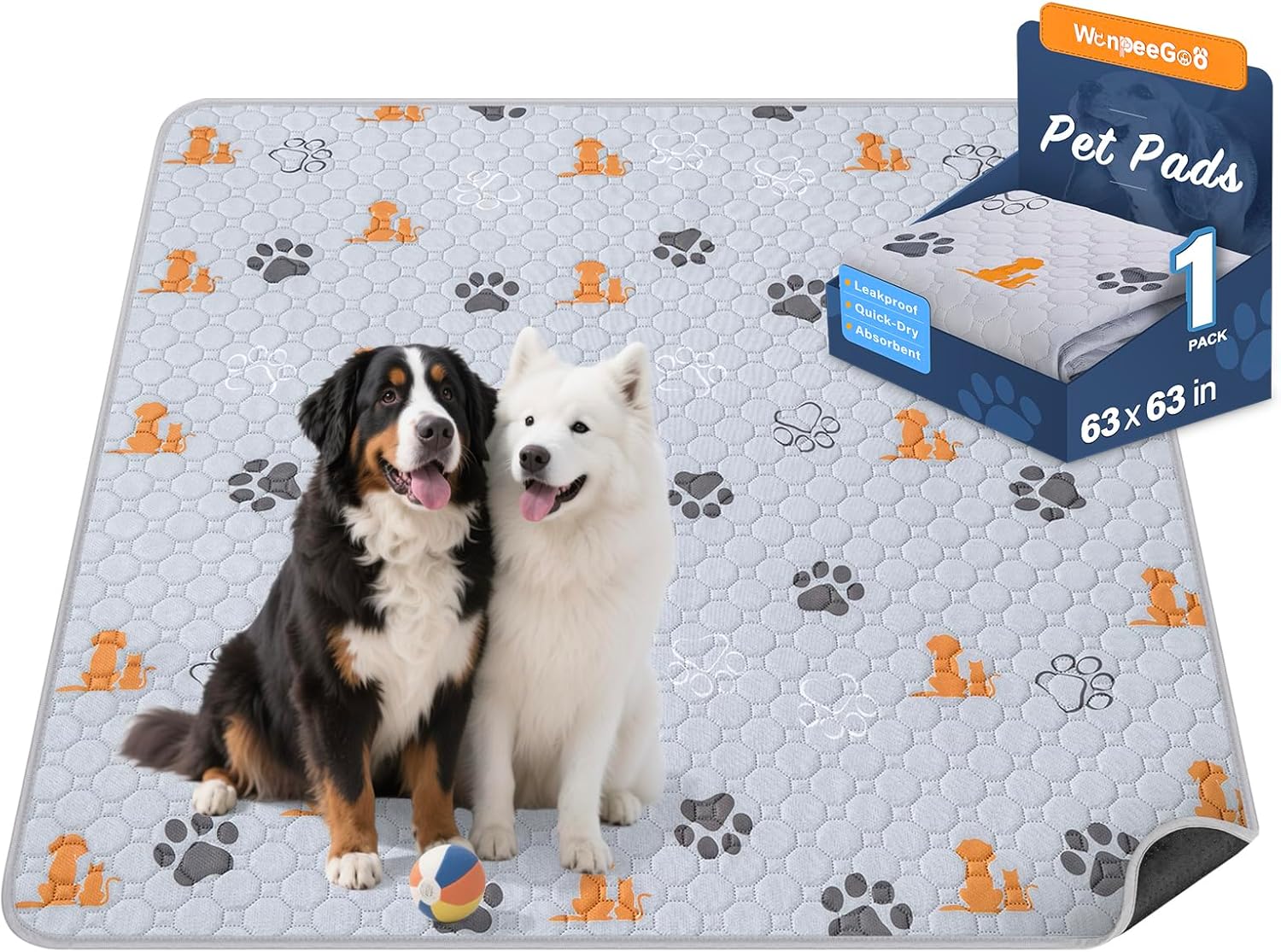 - 【Cute Dog Pee Pads】Come with 1 Packs. 63"x63" size with cute pattern are available to accommodate all dog breeds.Washable dog pee pads with our stylish design can be a puppy training pad, dog pen mat, dog playpen mat, dog carpet waterproof, crate pad, waterproof floor mat, pet piddle pad, dog kennel pad.