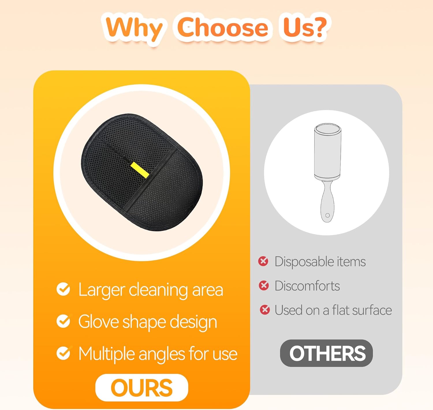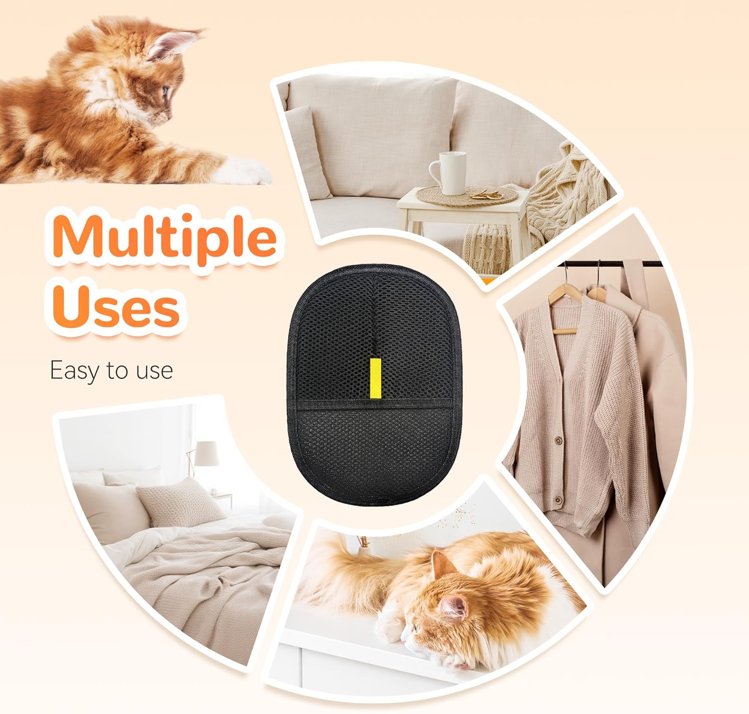 - ELECTROSTATIC TECHNOLOGY: Specialized gloves use static electricity to attract and capture pet hair without damaging delicate surfaces