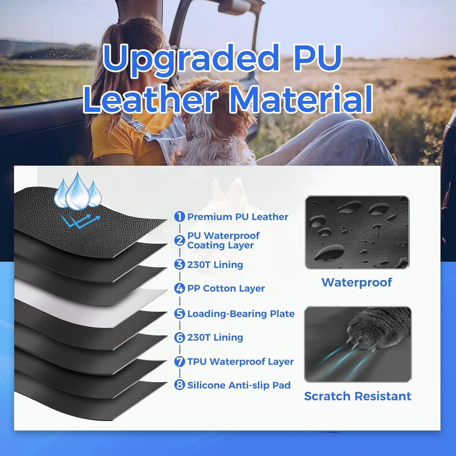 Back Seat Extender for Dogs,Hard Bottom Car Seat Cover,100% Waterproof 600D Heavy Durable Scratchproof Leather Car Dog Cover Back Seat,Non Slip Easy Clean Car Seat Protector,with Storage Bag