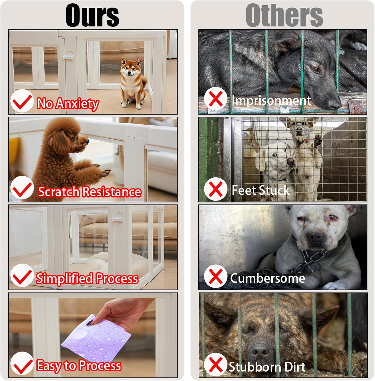 - 【Durable Materials】This dog playpen is made of high quality acrylic and polyethylene material, which is very wear-resistant and durable. 2 cm thick panels prevent pets from scratching and gnawing . The clear acrylic panels allow pets to see their owners without anxiety