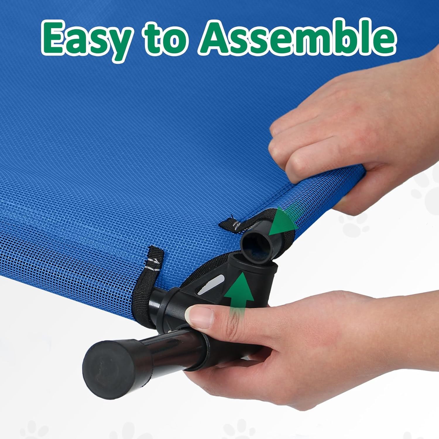 Outdoor Dog Beds Large Sized Dogs, Cooling Elevated Dog Bed with Breathable Mesh & Non Slip Feet, Raised Pet Bed Off The Ground, Lifted Place Cot (L, Blue)