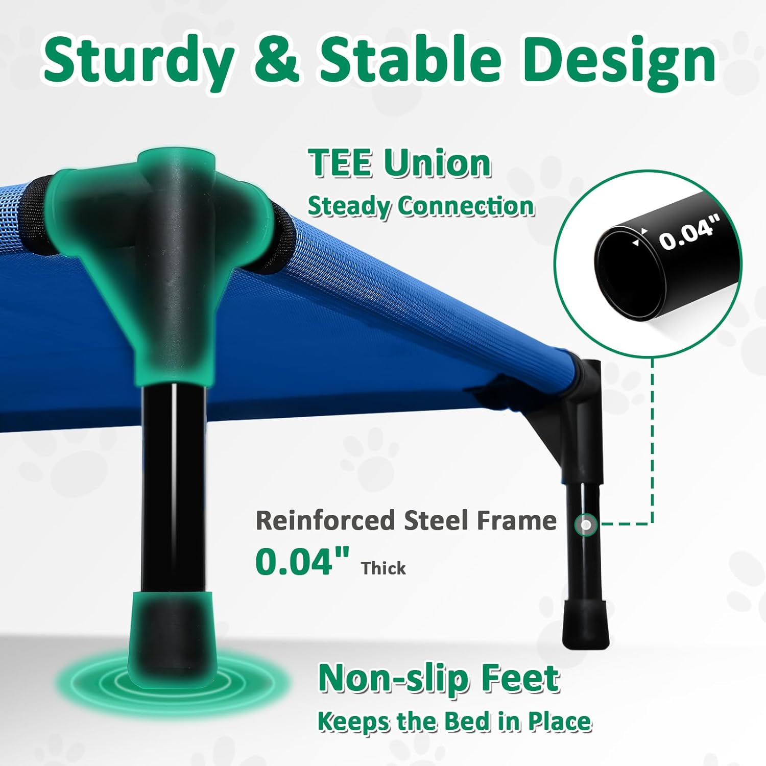 - BREATHABLE TESLIN MESH: This outdoor dog bed comes with breathable and durable Teslin mesh, provides airflow and firm support to relieve joint pressure. Our dog cot bed is suitable for dogs of all life stages, from puppy to the senior