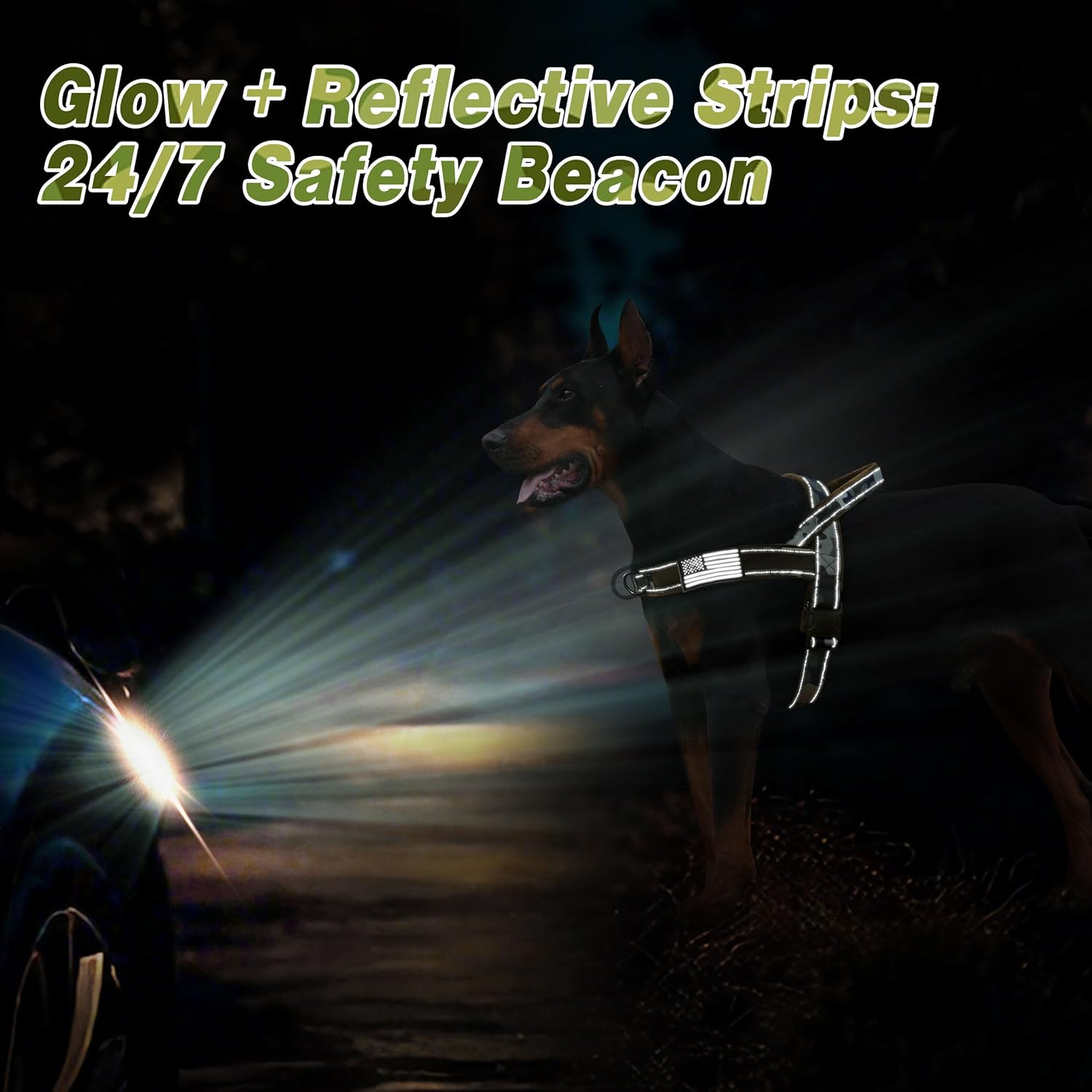 Forestpaw No Pull Dog Harness - Soft Flannel Padded Tactical Dog Vest Harness with Quick Release Buckle, Adjustable Reflective Pet Harness for Large Dogs Walking Training,Green Camouflage XL