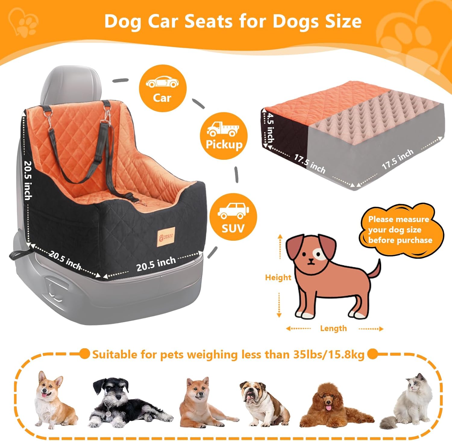 - Comfort and Multifunctional - Car seats for dogs adopt a brand new exterior design and high-quality materials, ensuring the safety of dog without lacking comfort.The elevated dog car seat has a thick cushion inside, effectively reducing the bumpy feeling of pet travel and improving the pet's view. It provide pets with comfortable rest, whether as dog bed at home, outdoors, or while traveling.