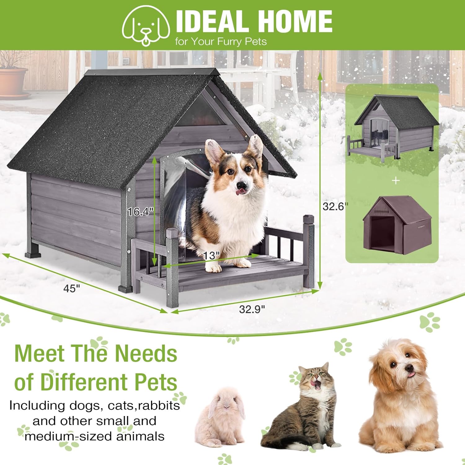 - SPACIOUS SPACE FOR MULTI BREEDS:Measuring 45in(L)ร32.9in(W)ร32.6in(H) with a roomy entrance of 16.4in(H)ร14in(W), our Dog House is perfectly sized for small and medium dogs. Suitable for both indoor and outdoor use, it's the perfect Puppy Shelter for any family pet
