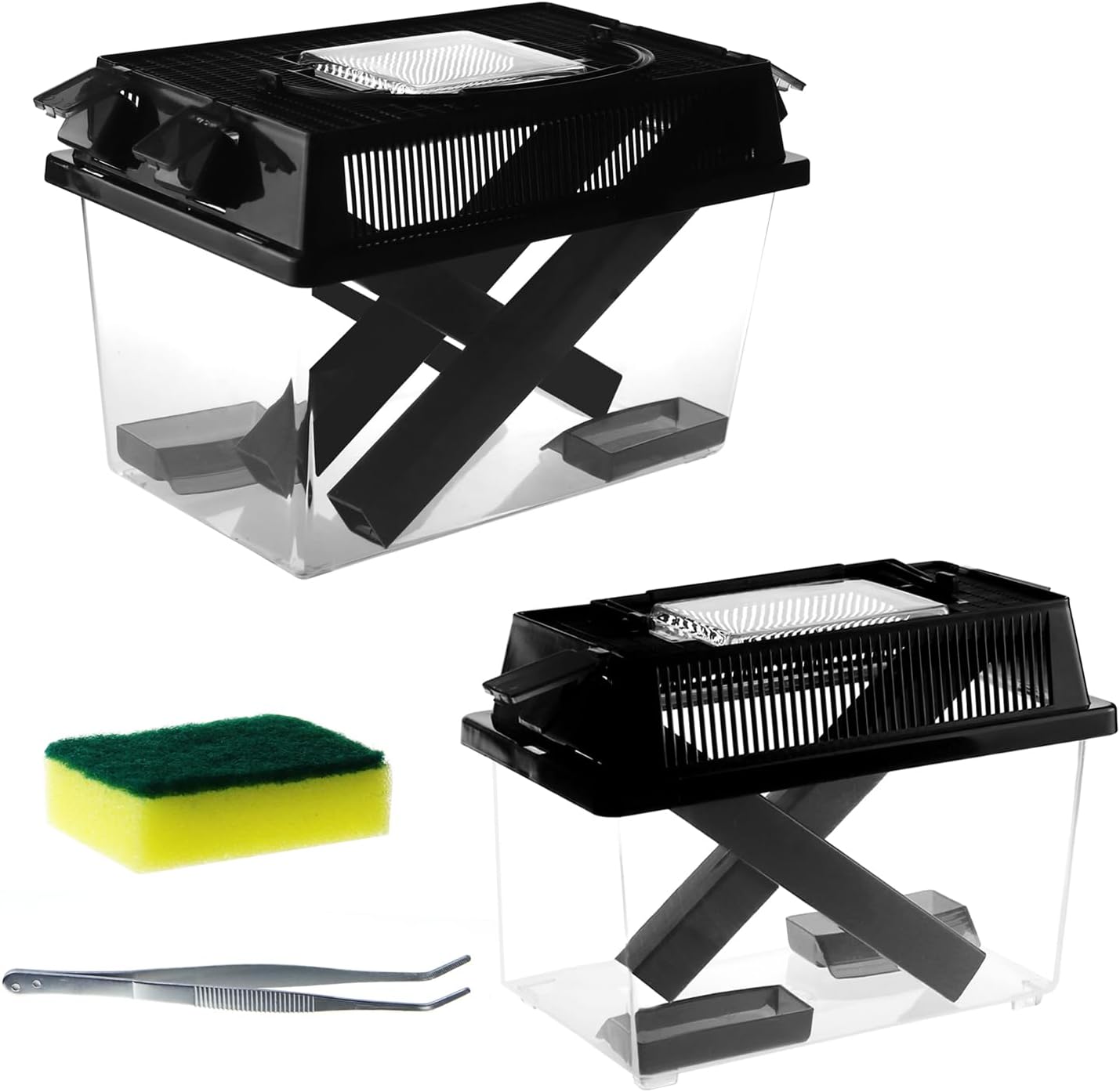 2-Pack Critter Keeper, Large and Middle Sizes, Equipped with Food Tweezers and Brushes, Cricket Pen with Dispenser Tubes, Insect Keepers for Reptiles Bearded Dragon Gecko Lizards
