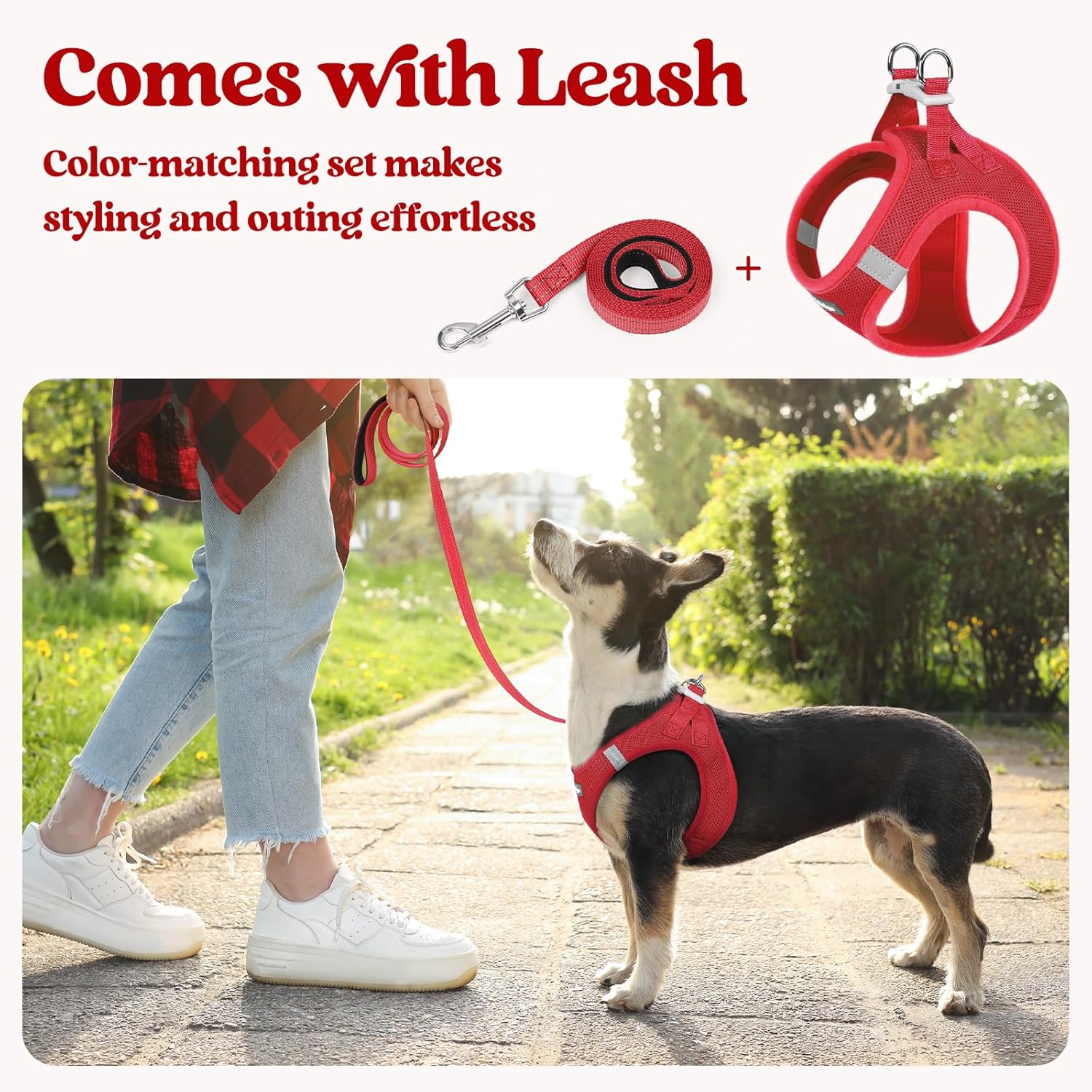 rabbitgoo Dog Harness Small Sized and Leash Set, Step in Soft Light Puppy Vest, Breathable Mesh Pet Harness, Reflective for Safe Easy Walking, Red XXS