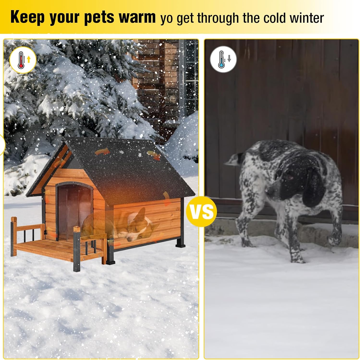 - Durable and Insulated Outdoor Dog House:Constructed with a robust iron frame and premium fir wood, this dog house ensures enhanced durability and longevity. The 6-side all-around sponge insulation, with a thickness of 0.78 inches, provides excellent warmth and protection against cold weather. The easily removable poly-foam is machine washable for convenience