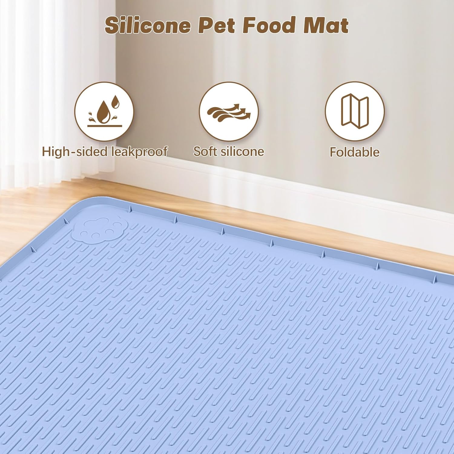 Cat Food Mat, 40" x 28" Extra Large Silicone Pet Feeding Mat with Raised Edge Pet Placemat for Food and Water Bowl Non-Slip, Easy to Clean, Floor Protection (Blue)