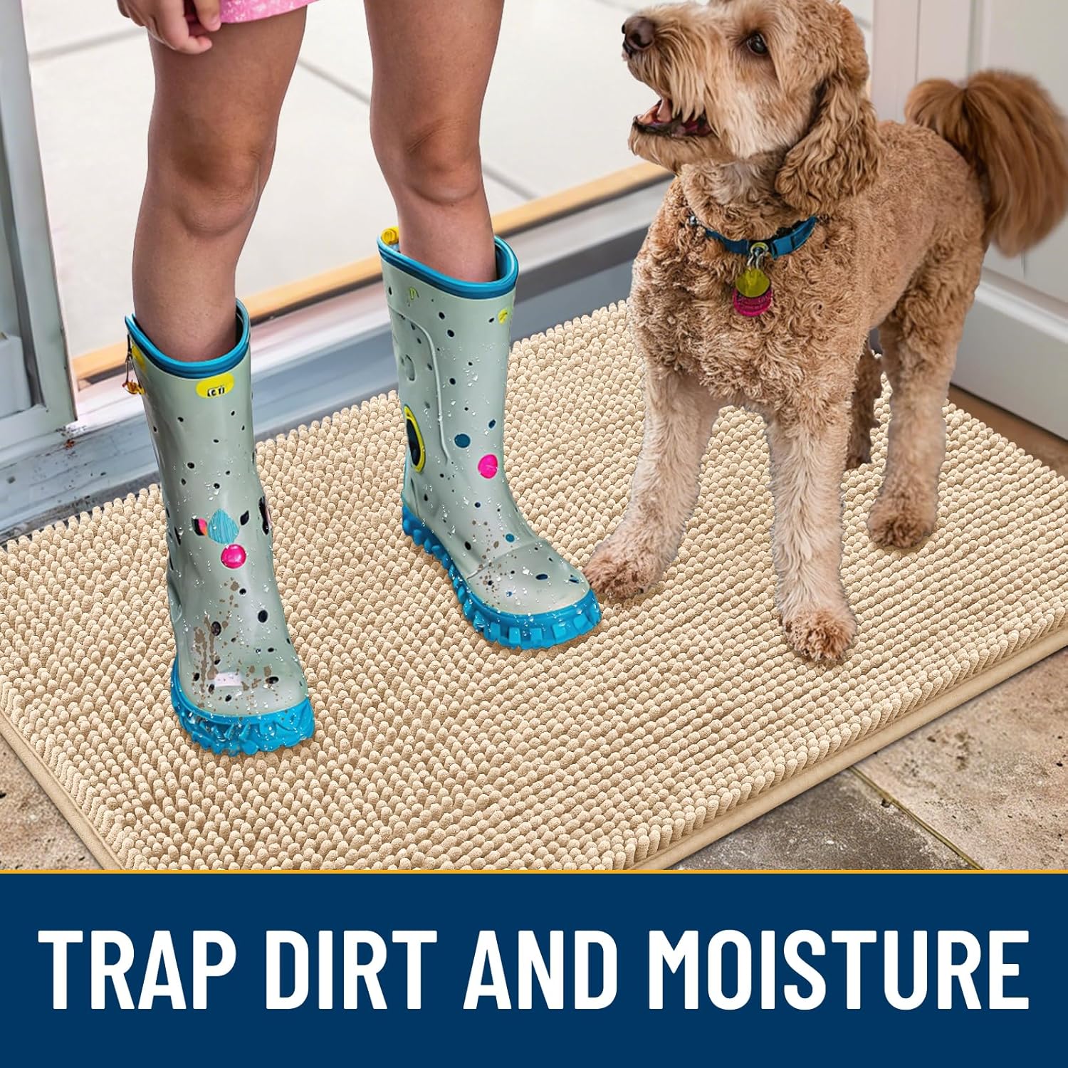 Smiry Dog Door Mat for Muddy Paws 47x17, Absorbs Moisture and Dirt Doormat, Non-Slip Washable Quick Dry Chenille Front Door Mat Indoor Entrance, Entryway Carpet for Inside Floor, Beige