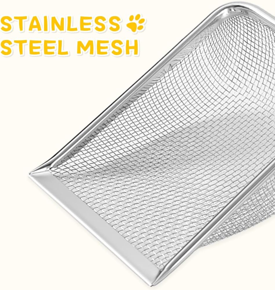 - 【5mm*5mm Small Mesh】The small mesh design allows you to easily separate cat feces fragments and cat litter with just a simple shake cat litter scoop, creating a clean cat excretion space without any effort.
