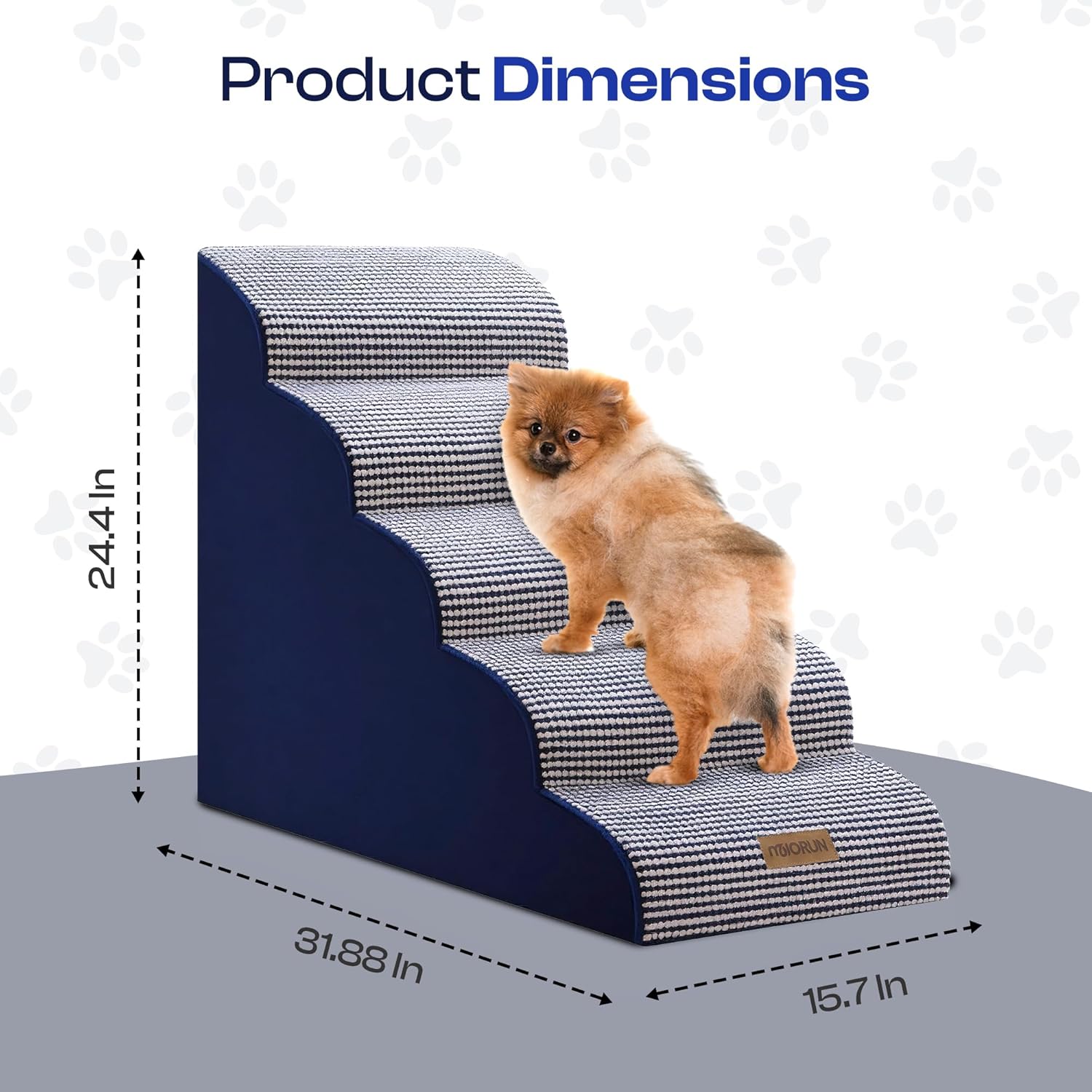 - Extra-Tall 24.5" Height – Reaches mattresses & couches that standard 22" 5-step stairs can’t, perfect for 26-30 inch high beds; lets dogs climb up instead of jumping.
