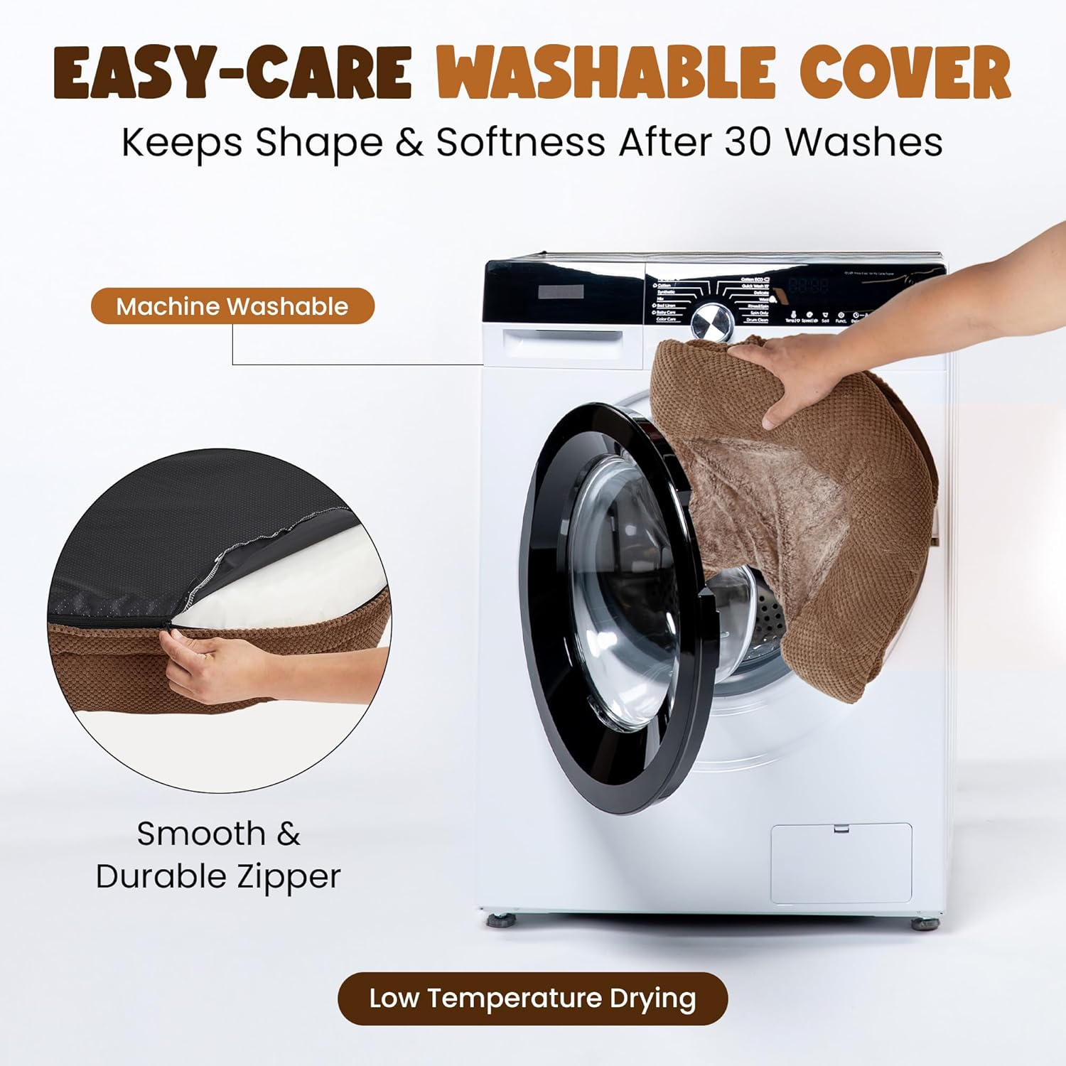 - Washable & removable cover: zippered cover is machine washable; easy to clean; compatible with replacement covers.