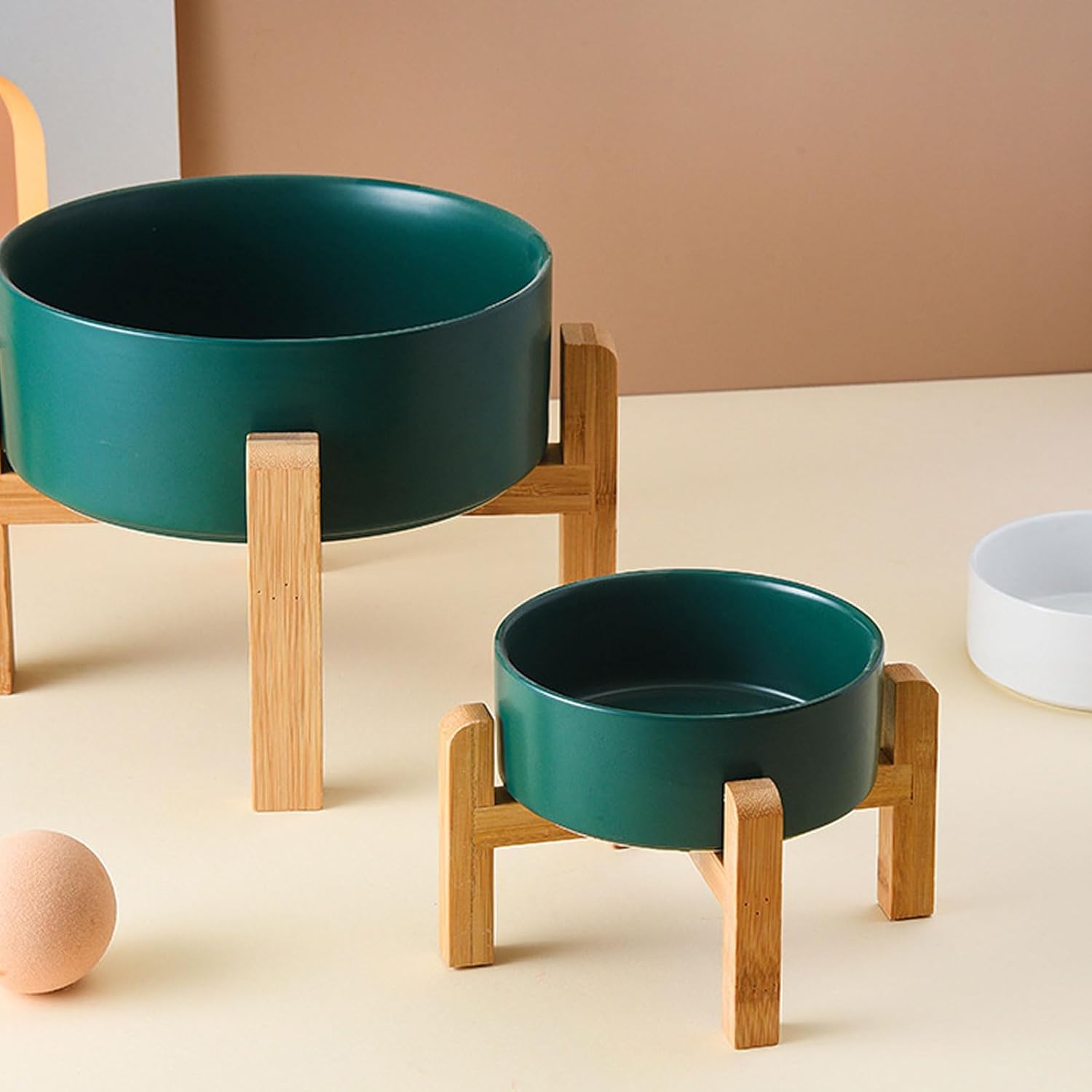 - NON SLIP WOOD STAND -You can get two different heights by flipping the bamboo stand,the elevated cat bowls are perfect for cats and small size dogs from different stages of childhood to adulthood, The wood stand on the bowls stopping ceramic cat dog bowl from sliding around, Keeps pet food and water in the bowls.