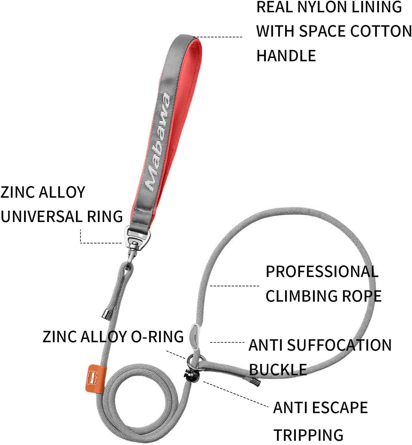 - 【Double Limit Design】: Heavy duty rope dog leash has 2 metal stoppers, which are anti-suffocation and anti-escape, and can easily stop the dog from pulling and will not cause harm to the dog. No-pull training, correcting bad behavior and controlling it in a short period of time, this chew proof leashes for dogs is effective for most dogs.