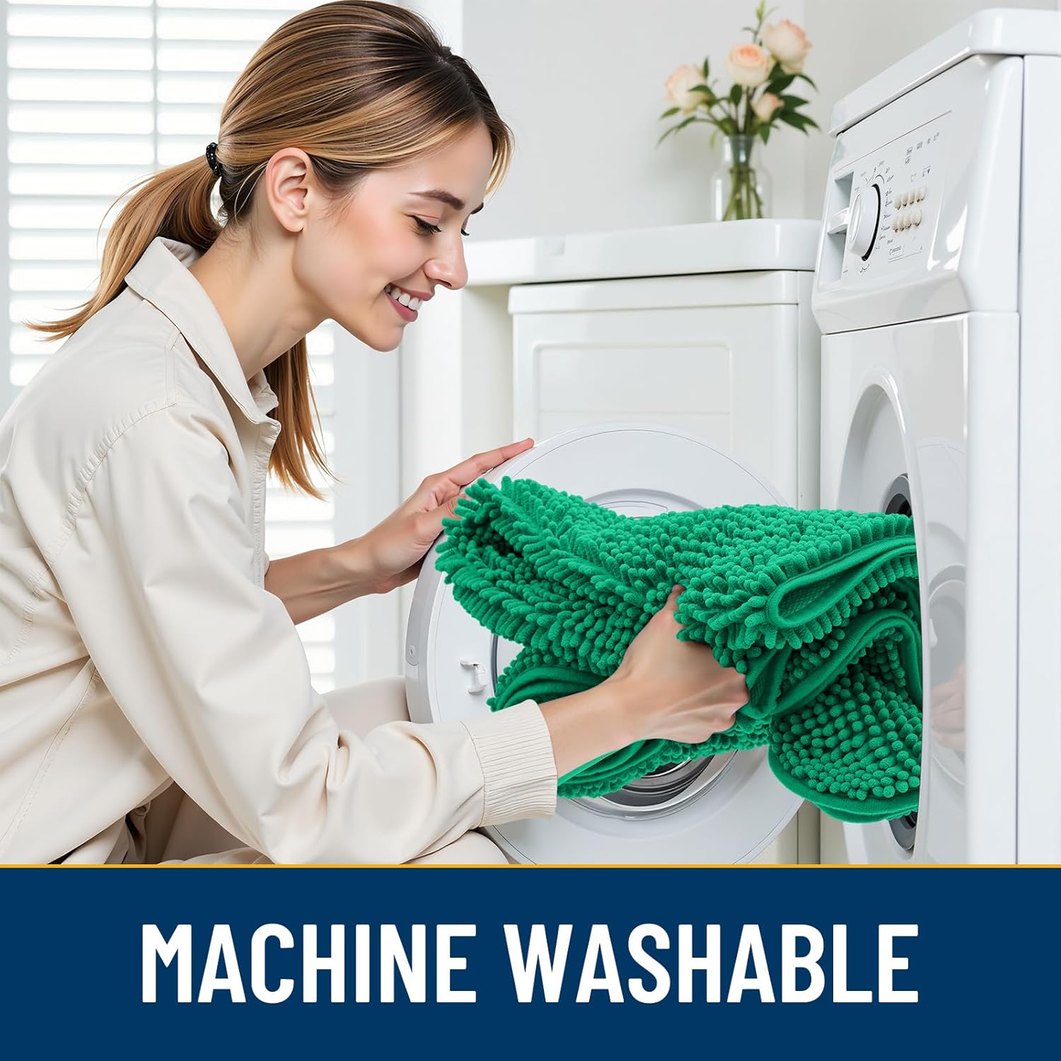 Smiry Dog Door Mat for Muddy Paws 30x20, Absorbs Moisture and Dirt Doormat, Non-Slip Washable Quick Dry Chenille Front Door Mat Indoor Entrance, Entryway Carpet for Inside Floor, Emerald Green