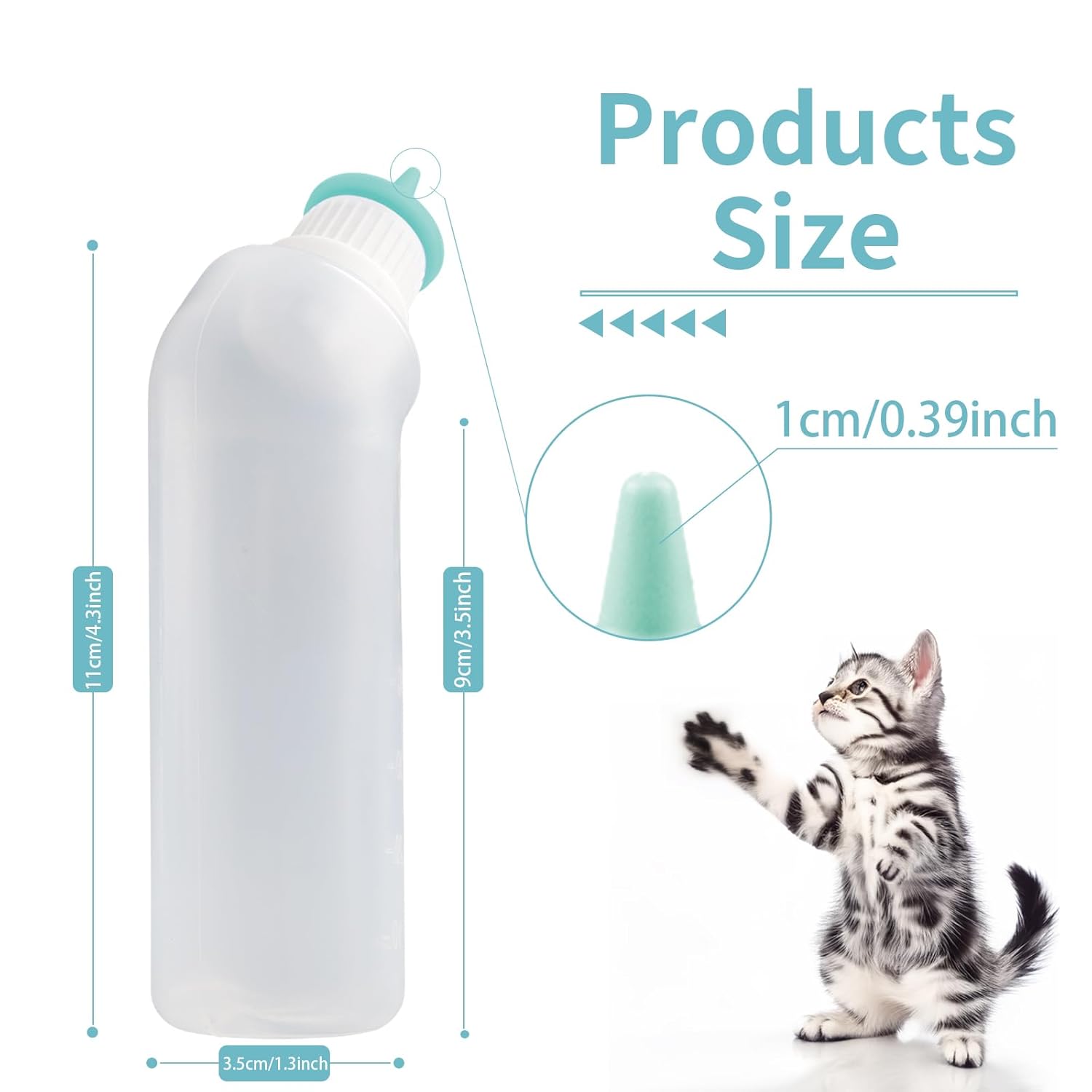 - 【Anti-Choking Design】:The curved neck of kitten bottle make easy to feeding puppy,kittens, and the style could facilitates a constant flow of milk into the teat, effectively reducing abdominal bloating from swallowing air while feeding.