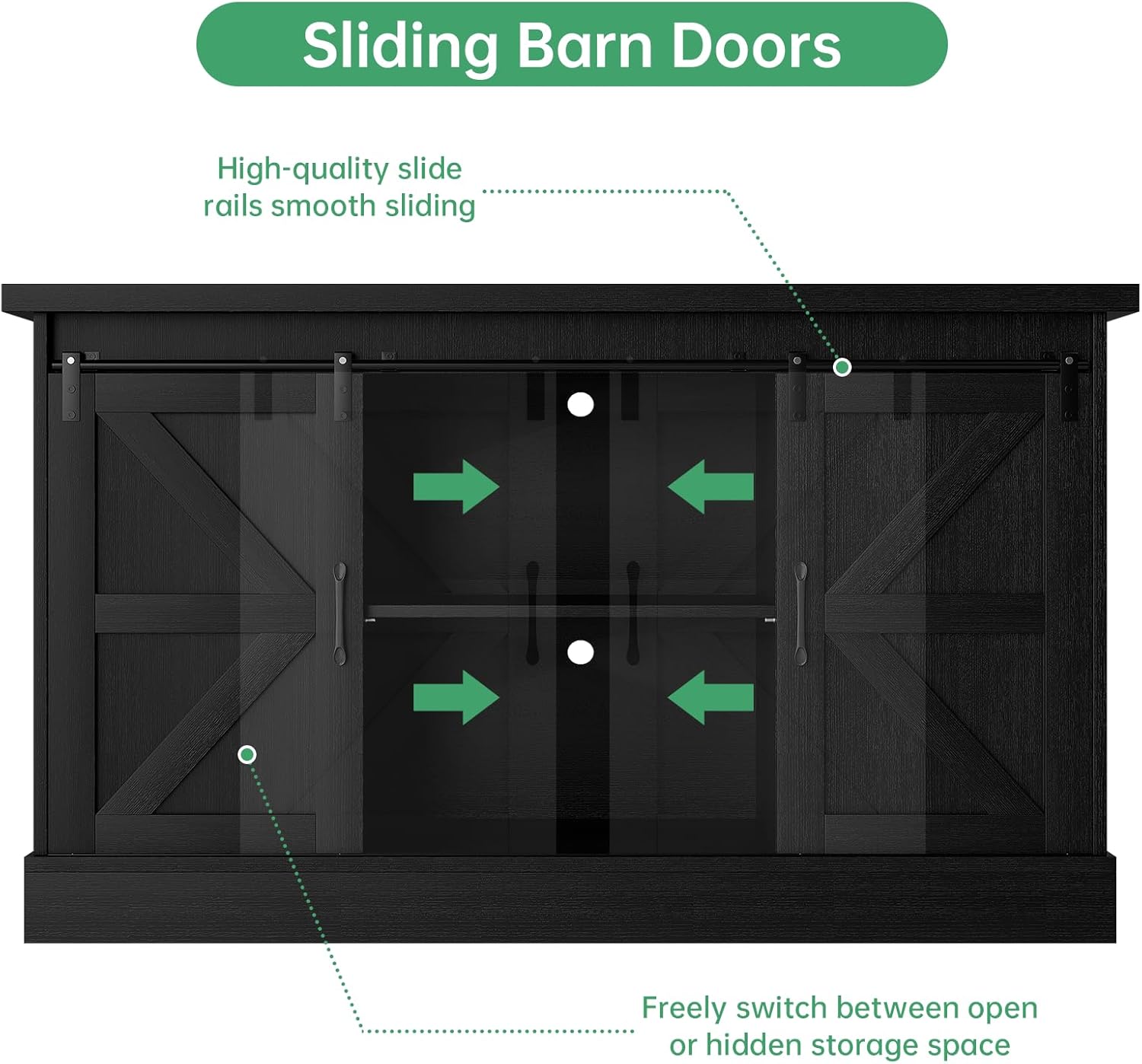 Fish Tank Stand Up to 75 Gallon, Aquarium Stand with Sliding Barn Doors & Power Outlet, Black Farmhouse Style Stand with Cabinet Storage for Fish Tank, Turtle Tank, Reptile Terrarium,1000LBS Capacity