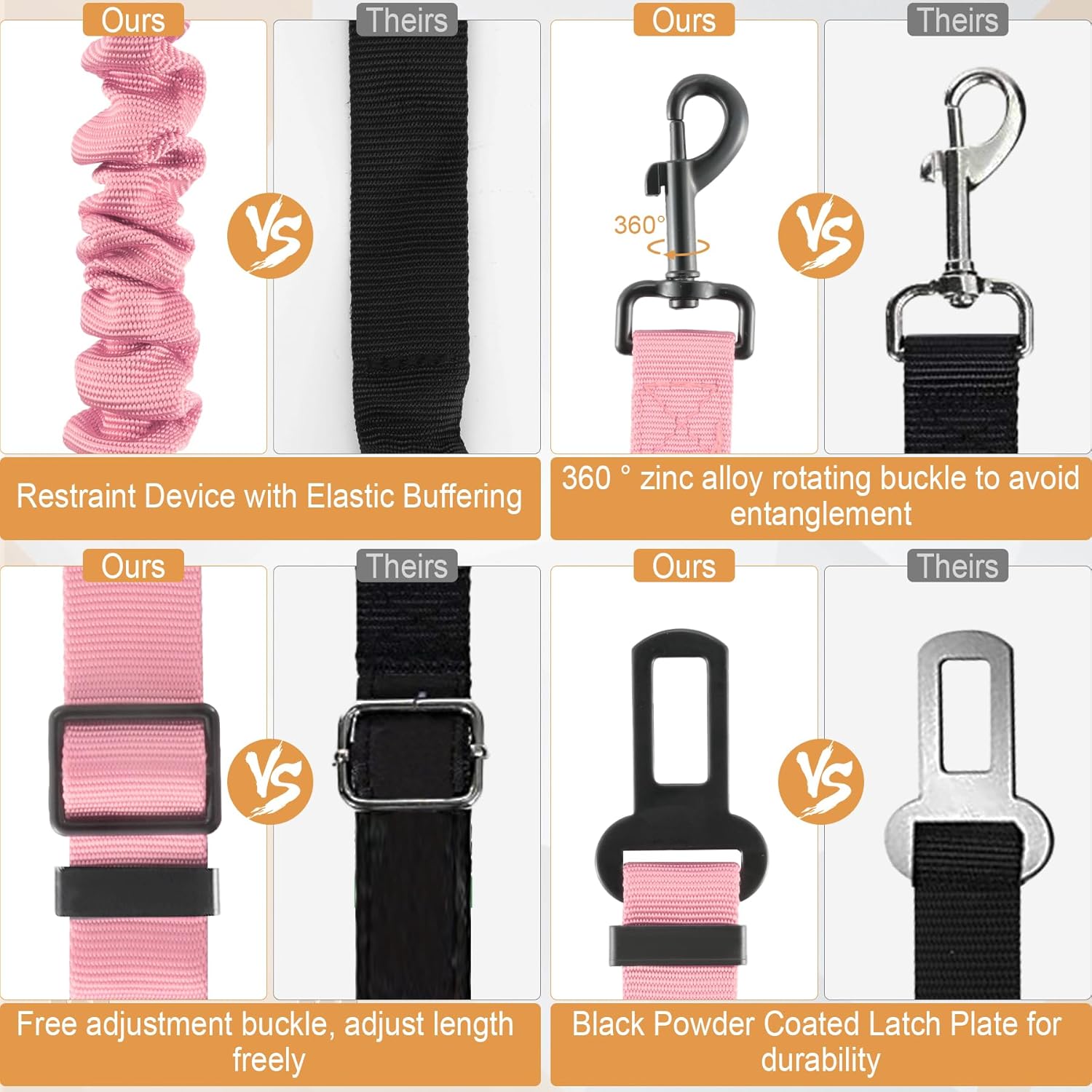 - 【HIGH QUALITY】Our dog seat belt for car use is made of high-density elastic nylon rope, which offers excellent durability and tensile strength. The 360° zinc alloy swivel snap and universal fit buckles are sturdy enough to prevent unbuckling or snapping at the worst possible moment, ensuring the safety of your pet while driving.