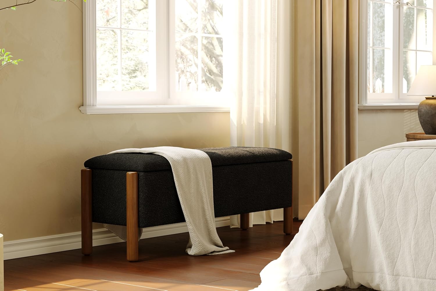- ELEGANT & TIMELESS DESIGN: Elevate your space with this stylish Storage Bench featuring genuine walnut wood-grain legs and plush 5.5cm cushioned seating. Wrapped in skin-friendly loop yarn fabric, this chic Ottoman Bench seamlessly enhances bedroom, end of bed, entryway, or livingroom decor while offering lasting comfort.