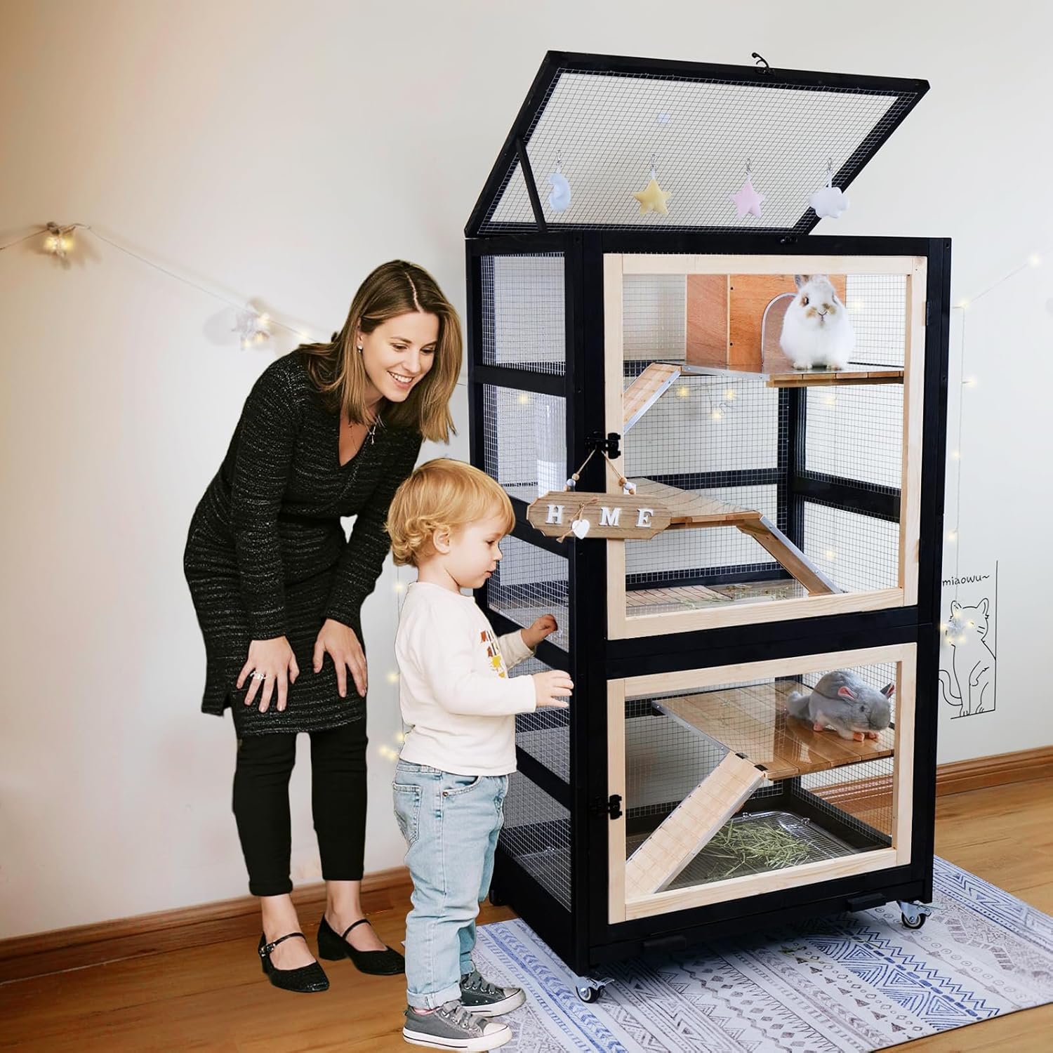 - Hassle-Free Cleaning:Slide-out stainless steel tray and large front doors make cleaning easy. Say goodbye to stubborn stains! The detachable PVC-coated surfaces wipe clean in seconds—ideal for large critter nation cage maintenance