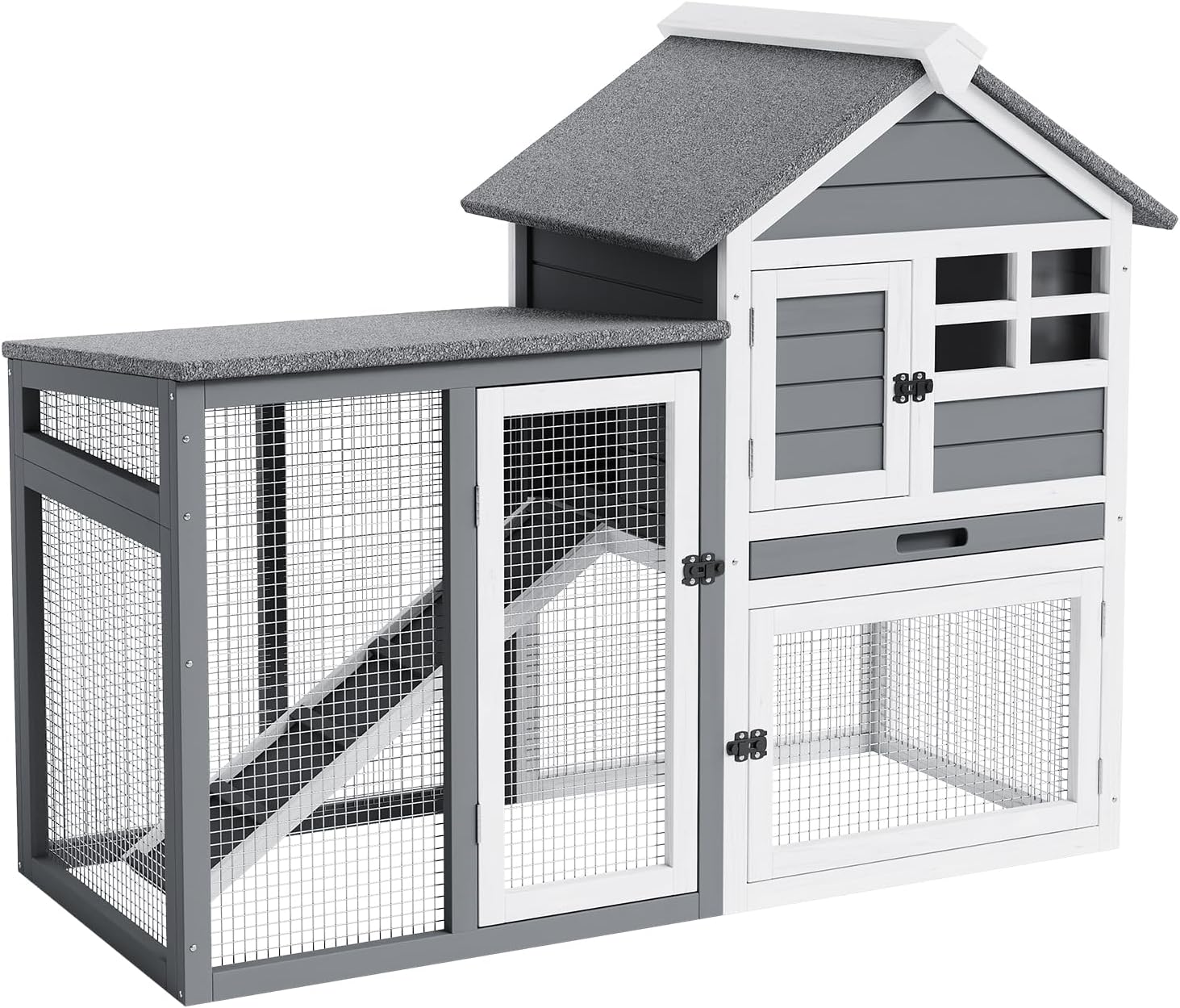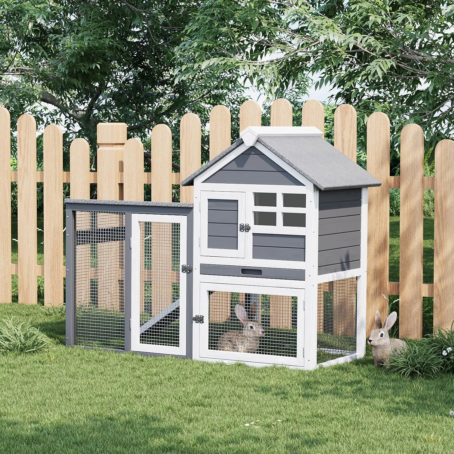 Rabbit Hutch 2-Tier, Small Wooden Chicken Coop for Outdoor Use - Weatherproof Small Animal Hutch with Non-Slip Ramp, 4 Access Doors & Removable Tray for Rabbits, Guinea Pigs, Ferrets (Indoor/Outdoor)