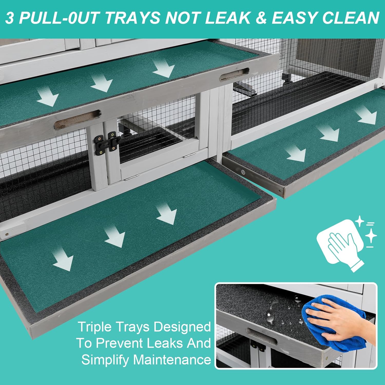 - 【Easy to Clean with Pull-Out Tray】Designed with an extra-deep base to contain messes, the pull-out tray helps prevent leaks and keeps the surrounding area clean. No need to lift the cage—just slide the tray out for fast, hassle-free maintenance
