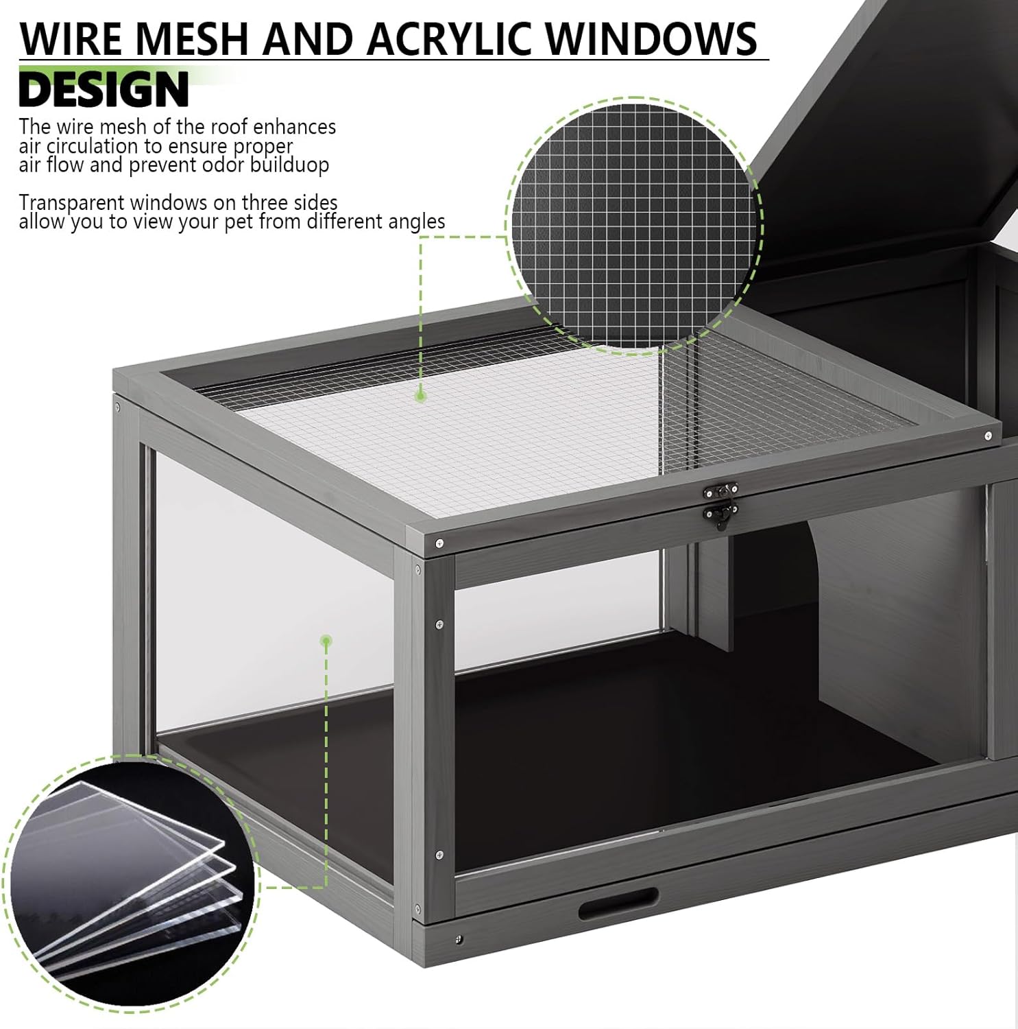- ✨【Easy to Clean & Assemble】: Note: Lights are not included. The Tortoise Habitat is designed with a large removable plastic tray to prevent bottom rot, making maintenance hassle-free. With two operable top lids secured by wooden brackets, assembly takes only 20-30 minutes, ensuring convenience for pet owners