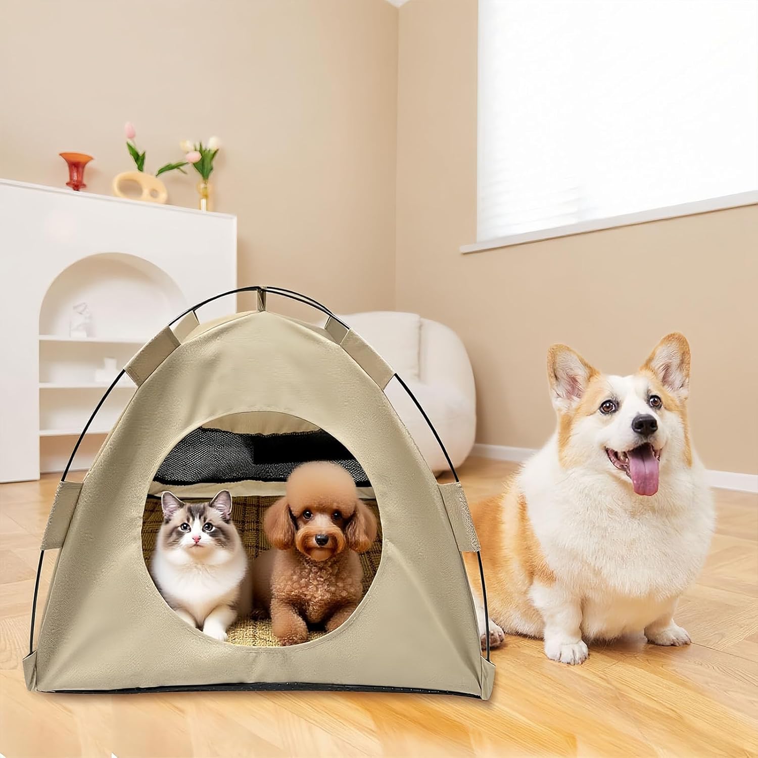 - [Mesh Window Fresh Air Visibility] -- A front-facing mesh panel keeps air circulating and lets curious pets peek out safely while lounging.