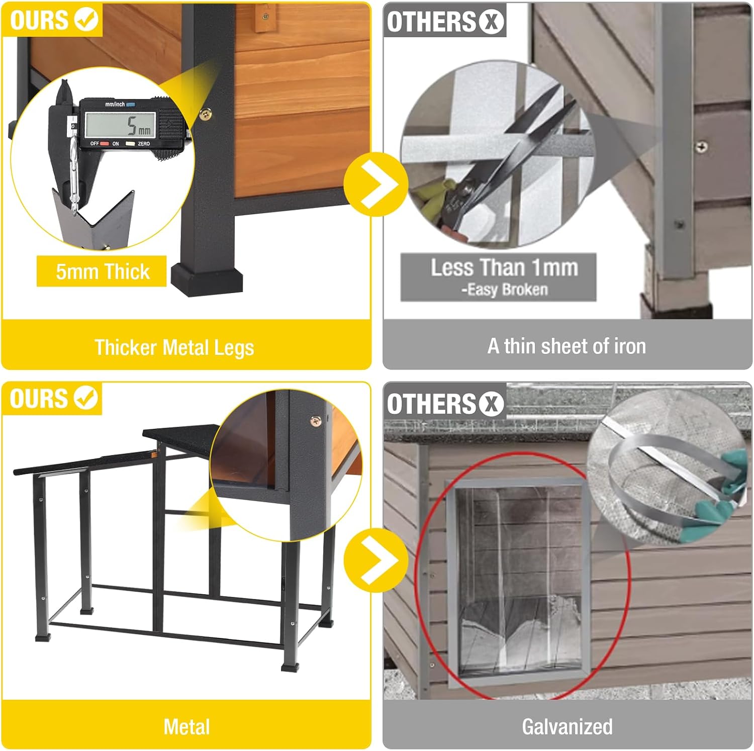 - 【Chew-Resistant & Durable Construction】Built with a heavy-duty iron frame and solid wood panels, this dog house effectively resists chewing and scratching, offering long-lasting safety and comfort for your pet