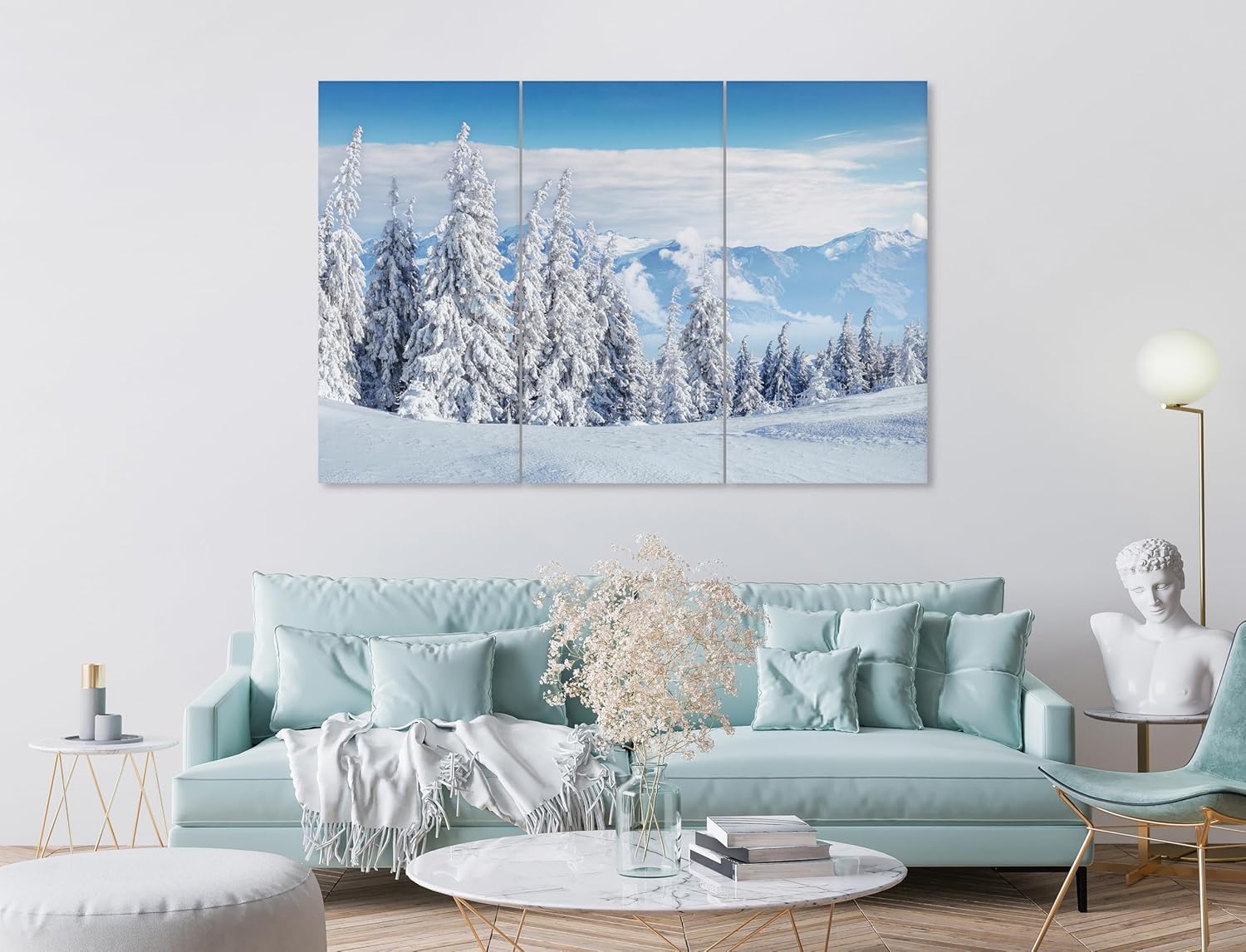 Nature Wall Art Prints - Ocean Forest Mountain Lake Canvas Landscapes - Small to Extra Large Living Room Bedroom Kitchen Bathroom Décor (Snow Covered Trees on Mountain, 55L" x 83W"- 3 Panels)
